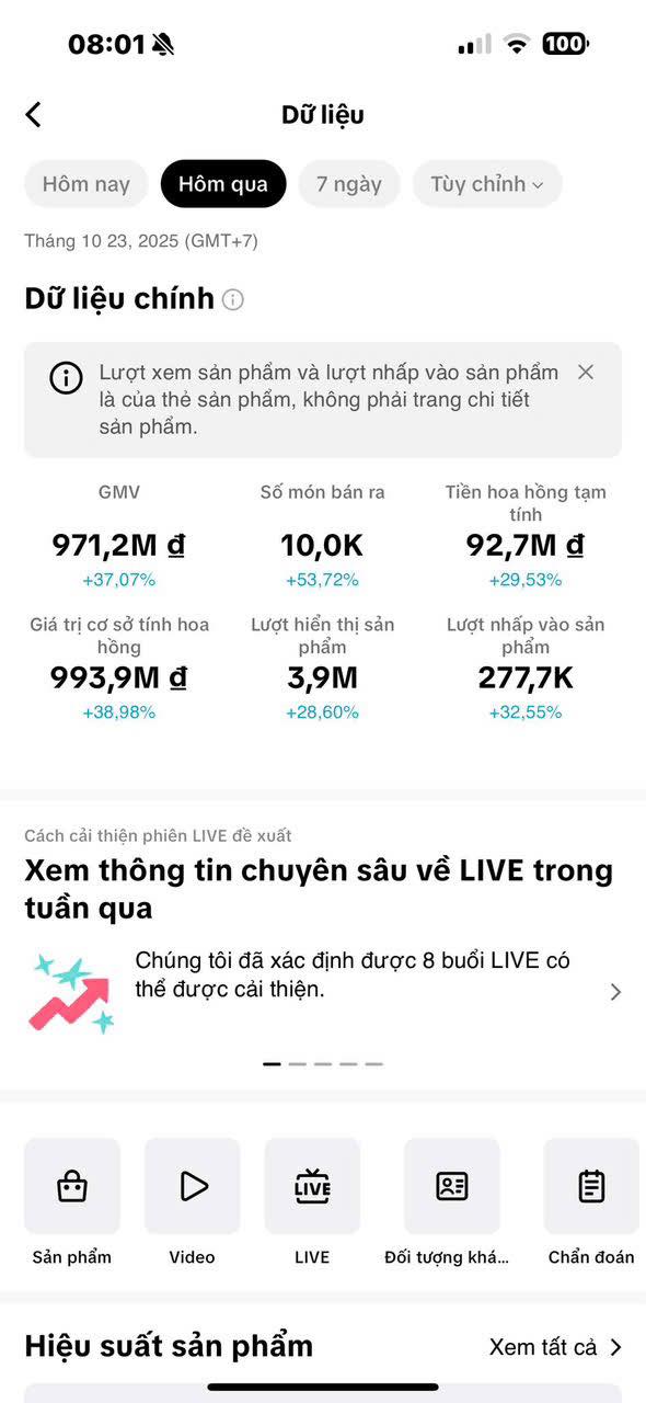 | List 100 SP bán chạy nhất TiktokShop | ✔ | ✔ | — | — | — |